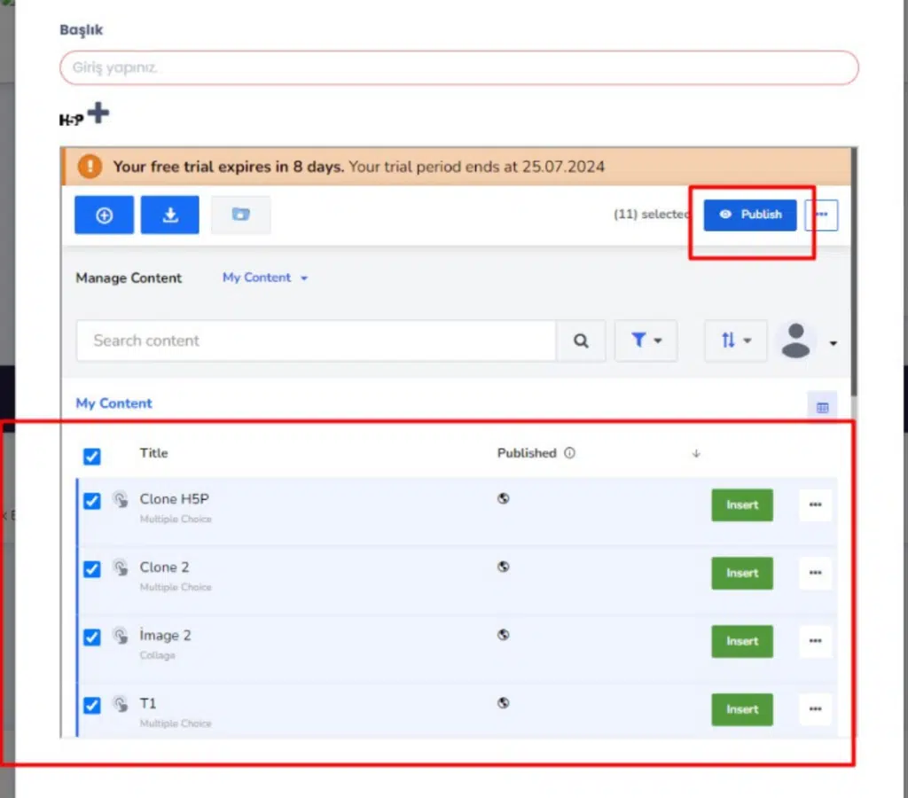 Vedubox, modern eğitim ihtiyaçlarını karşılamak üzere geliştirilmiş bir LMS platformudur ve LTI standardını kullanarak kullanıcılarına bu konuda bir deneyim sunar. Vedubox’a entegre edilen araçlardan biri de H5P içerik üretme aracıdır. LTI altyapısı sayesinde, Vedubox kullanıcıları H5P’yi sorunsuz bir şekilde kullanarak, platformlarına zengin ve etkileşimli içerikler ekleyebilirler. Bu sayede, eğitim materyalleri daha etkileyici hale gelir ve öğrencilerin öğrenme deneyimi daha da zenginleşir.